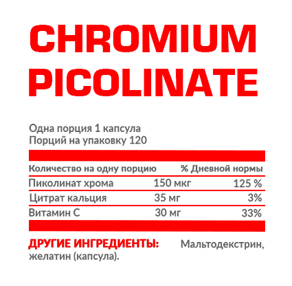 Піколінат хрому є однією з форм, що найбільш легко засвоюються. Хоча він виявлений в організмі у невеликих концентраціях, він є ключем до ефективного функціонування інсуліну. Хром зустрічається в природі в різних продуктах, але до 90% українців не мають у своєму харчуванні достатнього вмісту хрому.